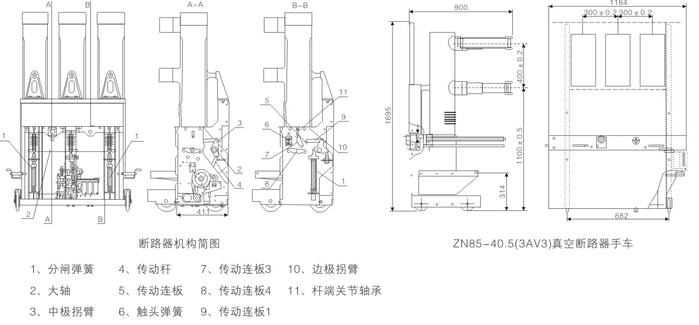 ZN85-40.5(模塊式)戶內真空斷路器適用于額定電壓40.5kV,三相交50Hz的戶內高壓設備,可供工礦企業(yè)、發(fā)電廠及變電站作為分合負荷電流、過載電流、短路電流之用,并適用開斷頻繁操作場合。