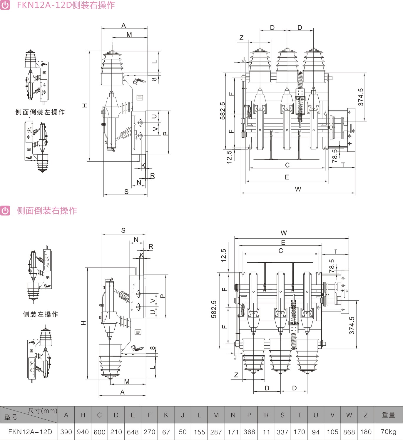 FKN12A-12D壓氣式負(fù)荷開關(guān),F(xiàn)KRN12A-12D系列壓氣式負(fù)荷開關(guān)-熔斷器組合電器,適用于12KV及以下三相配電系統(tǒng)中,作為變壓器、電纜、架空線路等電力設(shè)備的控制和保護(hù)之用;特別適用于城網(wǎng)、農(nóng)網(wǎng)的終端變電站及箱式變電站。并適用于環(huán)網(wǎng)、雙輻射供電單元的控制和保護(hù)。