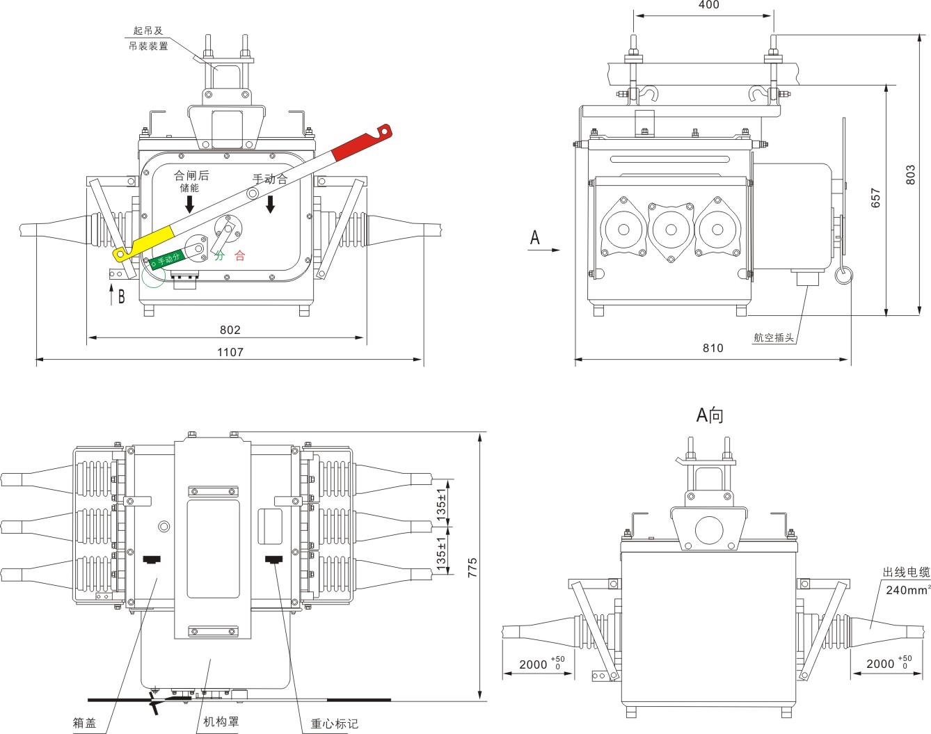 分界負(fù)荷開關(guān)由FZW28-12真空負(fù)荷開關(guān)和控制器兩大部分組成,通過航空插座及戶外密封控制電纜進(jìn)行電氣連接。能可靠判斷檢測界內(nèi)外的毫安的零序電流及相間短路電流,可適宜不同中性點(diǎn)接地方式的配電系統(tǒng)。