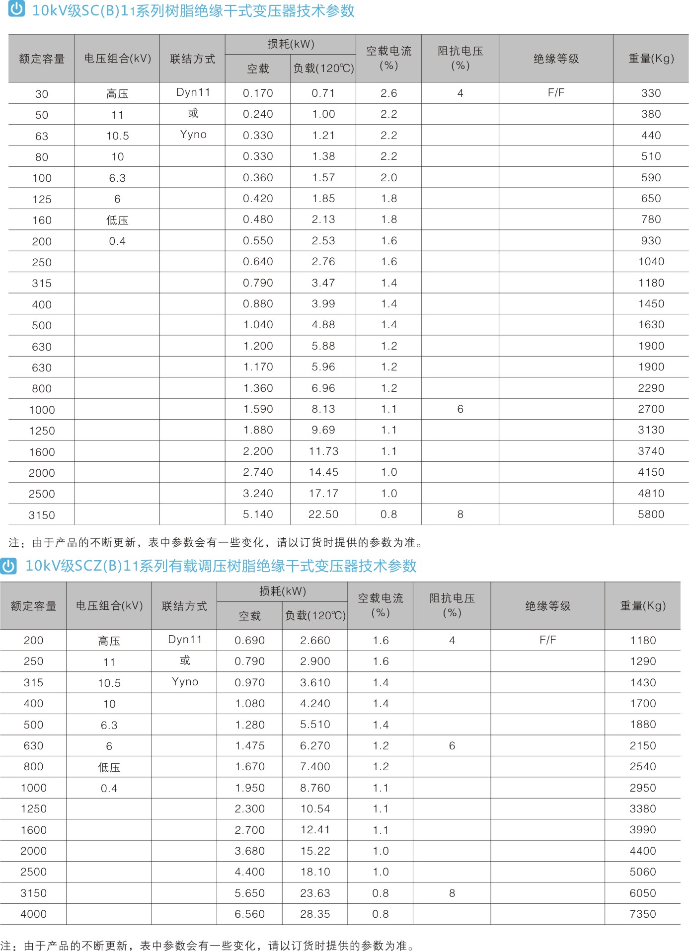 SC10、SCB10系列以及SCB11帶填料薄絕緣干式變壓器,由于其線圈被環(huán)氧樹(shù)脂包封,所以難燃,防火、防爆,免維護(hù),無(wú)污染,體積小,可直接安裝在負(fù)荷中心。同時(shí)科學(xué)合理的設(shè)計(jì)和澆注工藝使產(chǎn)品局部放電量更小,噪聲低,散熱能力強(qiáng),在強(qiáng)迫風(fēng)冷條件下可以在140%額定負(fù)載下長(zhǎng)期運(yùn)行,并配有智能溫控儀,具有故障報(bào)警、超溫報(bào)警、超溫跳閘以及黑閘子功能,并通過(guò)RS485串行接口與計(jì)算機(jī)相連,可以集中監(jiān)視和控制。