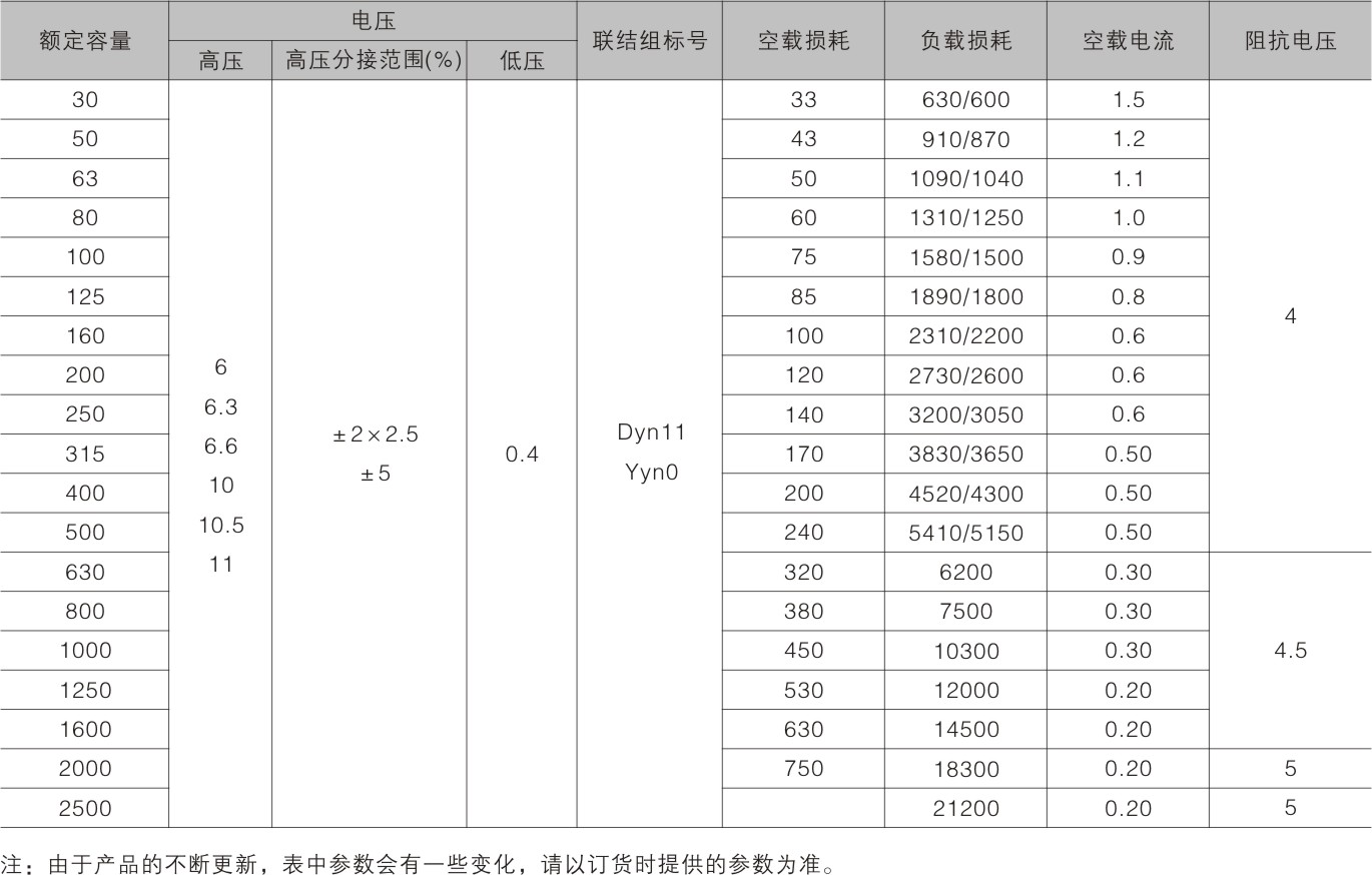 變壓器鐵心用非晶合金帶材卷制而成,空載損耗比S9型變壓器降低75%~80左右;